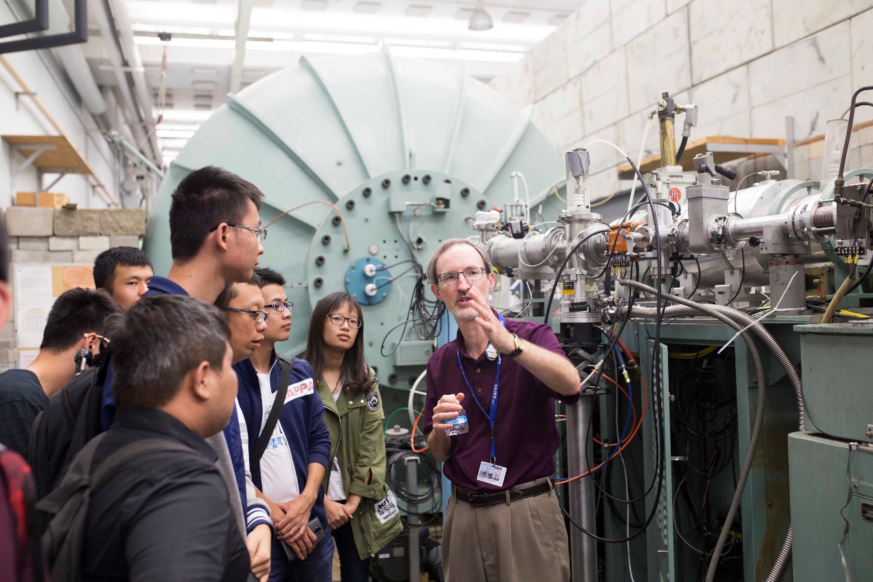 精彩的介绍之后,一行人来到物理系的门口合影留念: