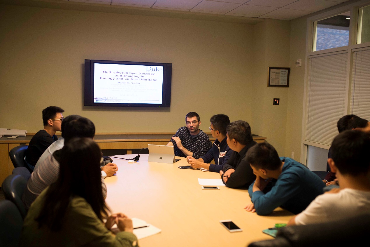 在之后的五天里,来自杜克大学不同院系的数十位教授给大家带来了十多场精彩报告,几位教授还带大家参观了自己的实验室,同学们通过一场场的报告和参观活动,见微而知著,了解到了外国学校科研的现状,明确了自己将来努力的方向。