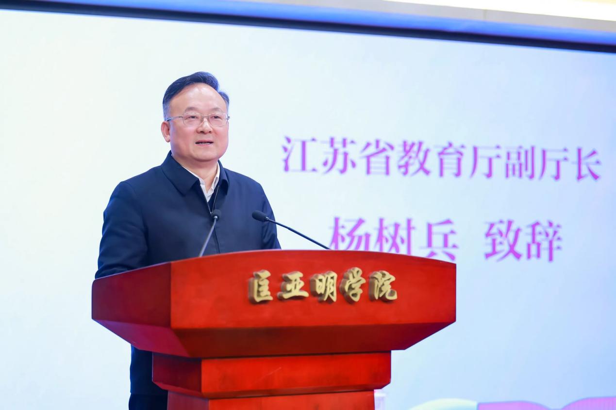 杨树兵代表省教育厅对匡亚明学院四十年取得的卓越成就致以热烈祝贺。他表示,匡院始终以国家战略为引领,以学生成长为圆心,深耕荣誉教育“试验田”,走出了一条兼具南大底蕴、江苏气派、中国特色的育人之路。他强调,匡亚明学院使命光荣,责任重大,并对学院发展提出三点期待:一是在拔尖创新人才自主培养方面,持续当好“领航者”;二是在荣誉教育理论研究和实践创新方面,持续当好“开拓者”;三是在荣誉教育协同发展方面,持续当好“粘合剂”。他表示,省教育厅将一如既往地全力支持南京大学及匡亚明学院的改革发展,共同打造在全国有影响力、可复制、可推广的荣誉教育“江苏范式”。