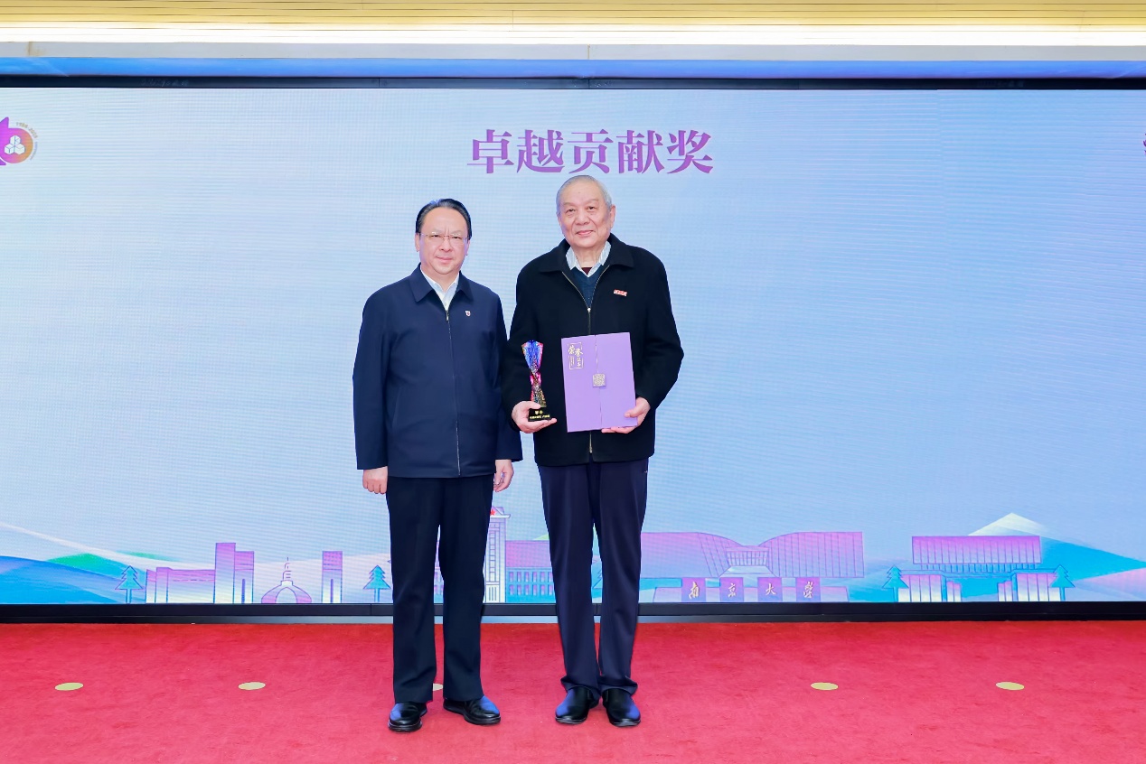 在荣誉表彰环节,谭铁牛为原南京大学基础学科教学强化部主任、原南京大学基础学科教育学院院长、匡亚明学院教学总监卢德馨教授颁发“卓越贡献奖”。与会嘉宾和领导为匡亚明学院“桃李育人奖”“开拓奋进奖”“特别贡献奖”“突出成就奖”获奖个人和集体颁奖。