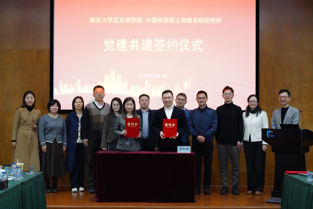 周媛、狄增峰分别代表南京大学匡亚明学院及中国科学院上海微系统与信息技术研究所,签署了党建共建协议;刘斌、尤立星分别代表南京大学电子科学与工程学院及中国科学院上海微系统与信息技术研究所,签署了合作协议。会上还围绕高校与科研院所各自的人才培养优势、推免及招生政策、产教融合方案、科研训练体系等进行了热烈讨论。