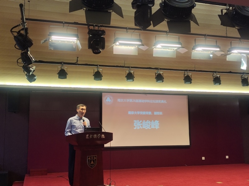 张峻峰副校长在致辞中肯定了匡亚明学院在拔尖人才培养方面的积极探索,指出“基础学科拔尖人才培养”是南京大学立德树人工作的重要内容之一。多年来,我校坚持以培养拔尖创新人才为目标,不断优化教育教学资源、加强高水平教师队伍建设,着力深化以科教融合为特色的人才培养体系建设,努力塑造综合发展、全面素质、具有创新思维、批判思考和责任担当的卓越人才。在今后的工作中,学校将进一步深入贯彻落实党的二十大精神,深入推进“奋进行动”工作部署,全面提高人才自主培养质量,着力造就拔尖创新人才,以更高水平的科教融合和前沿引领、更宽领域的学科交叉和通专融合、更长跨度的衔接培养和模式贯通,为学生提供更好的成长生态、更优的教育资源和更强的服务支撑,努力打造具有“中国特色、南大特质、时代特点”的拔尖创新人才培养体系。