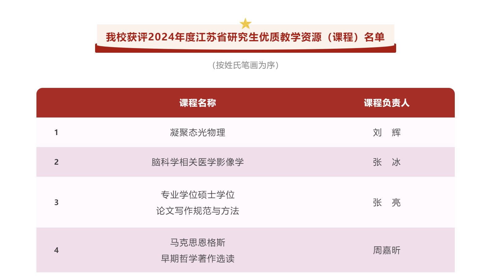 近日,江苏省教育厅公布2024年度研究生优质教学资源评选结果,南京大学获评优秀研究生课程4门,其中我院本研贯通课程《脑科学相关医学影像学》课程成功入选,成为本年度江苏省唯一获此殊荣的脑科学交叉学科课程。