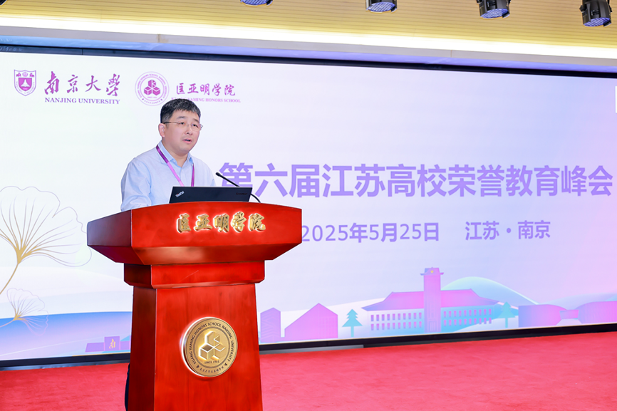 2025年5月25日,由南京大学匡亚明学院承办的第六届江苏高校荣誉教育峰会顺利举行。江苏省教育厅高等教育处二级调研员郭新宇、南京大学校长助理姜田,省内外23家荣誉学院的近百名代表参加会议。会议开幕式由南京大学匡亚明学院党委书记周媛主持。