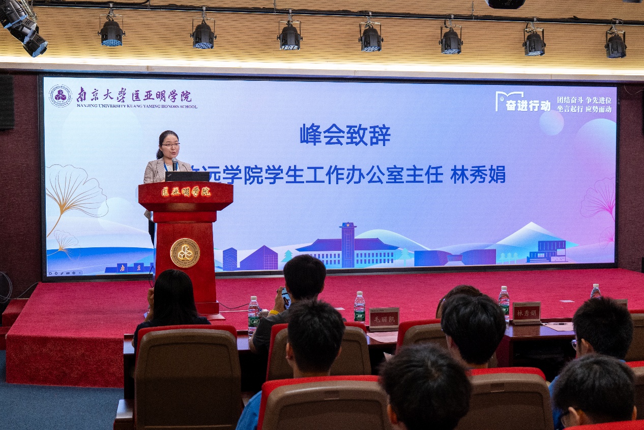 本次峰会主要分为开幕式、分会场讨论、学生才艺表演、素质拓展和闭幕式。在开幕式上,南京大学匡亚明学院党委书记周媛代表匡亚明学院对三所兄弟高校荣誉学院师生的到来表示热烈的欢迎,并介绍了南京大学匡亚明学院以“三个适配”为牵引,在大理科教育教学模式的创新实践上,持之以恒的探索和改革。她希望同学们在此次峰会上碰撞思想的火花,展现青春的风采,结下深厚的友谊,以创新的思维去破解难题,以担当的精神践行使命,在服务长三角一体化发展,建设教育强国、科技强国的征程中,书写奋进篇章。