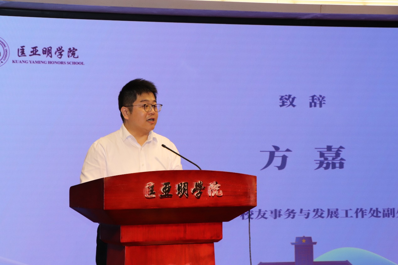 方嘉在致辞中向匡亚明学院1990级校友表示衷心感谢。他谈到,校友们的慷慨捐赠不仅体现了对母校的深厚感情,也彰显了对教育事业和社会发展的高度责任感。他恳请各位校友能够一如既往地关心和支持母校的发展,共同为南京大学的建设和发展贡献自己的力量。