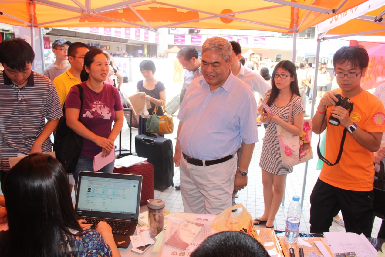 迎新期间,匡院学生会负责接待和引导的同学还得到了洪银兴书记等学校领导的关怀鼓励与悉心指导。洪书记当天对整个迎新活动进行了视察、对各院系的同学们进行了问候,对我们有条不紊的新生接待以及新生手册和照片墙等工作内容表示了赞许。当洪书记等领导一行来到匡院接待区时,匡院的同学们倍受鼓舞,校领导们百忙之中抽空来到仙林校区指导和慰问迎新工作,也让同学们无比感动,大家充分感受到南京大学对本科教育的重视以及对新同学们的深切关怀。