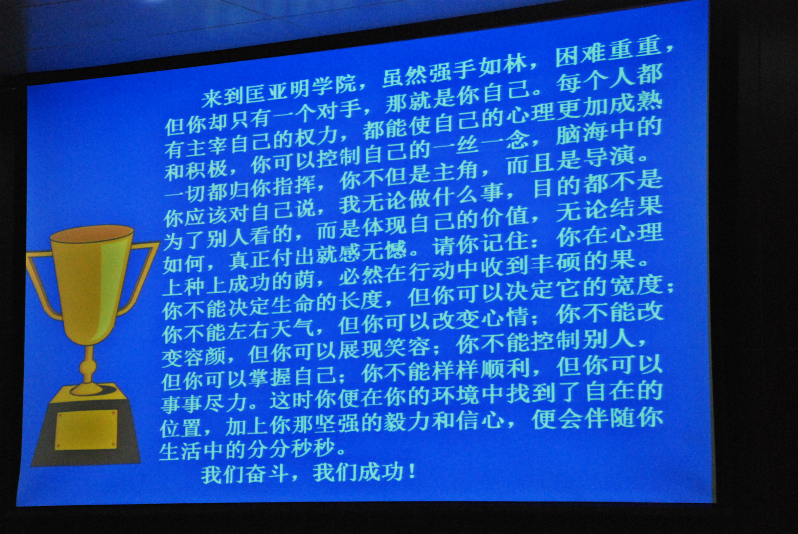 相信今天的讲座会给每个同学以积极向上的正能量,直面学习与生活上的困难,不退缩不放弃,坚持努力。