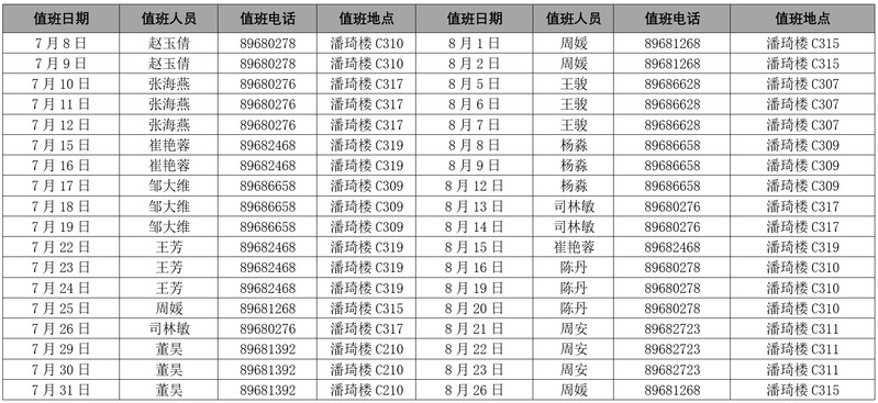 匡亚明学院2024年暑期工作组暨暑假值班表