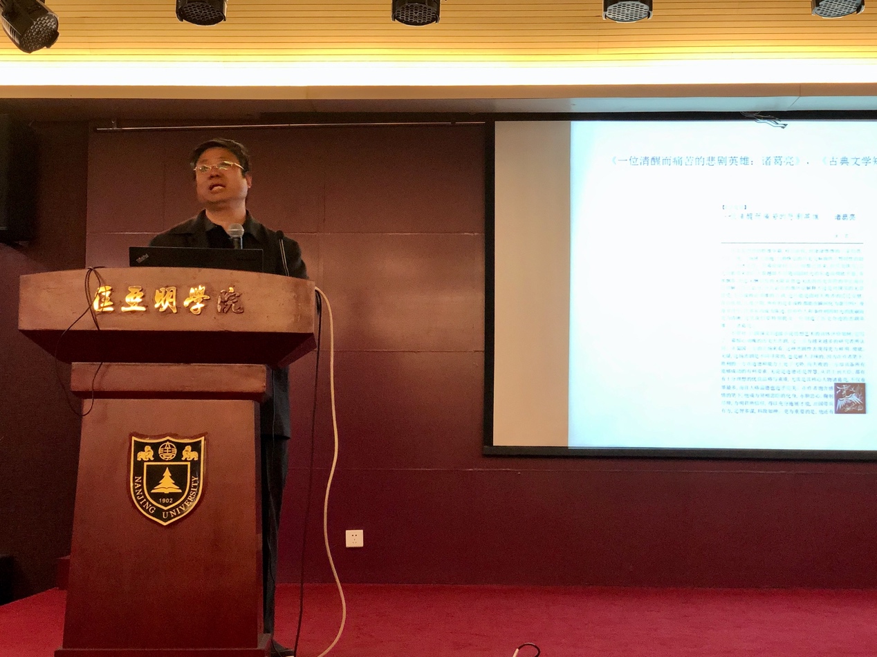 11月13日,南京大学文学院教授苗怀明老师为匡亚明学院及拔尖班的同学们进行了一场题为“一位清醒而痛苦的悲剧英雄——《三国演义》诸葛亮形象解读”的讲座。苗怀明老师现为南京大学文学院副院长、教授、博士生导师、古代小说网创办人及主持人。教授语言平实幽默,用最生动的语言为同学们还原了一个个历史事件,加深了同学们对《三国演义的理解》,整场讲座气氛轻松活跃。