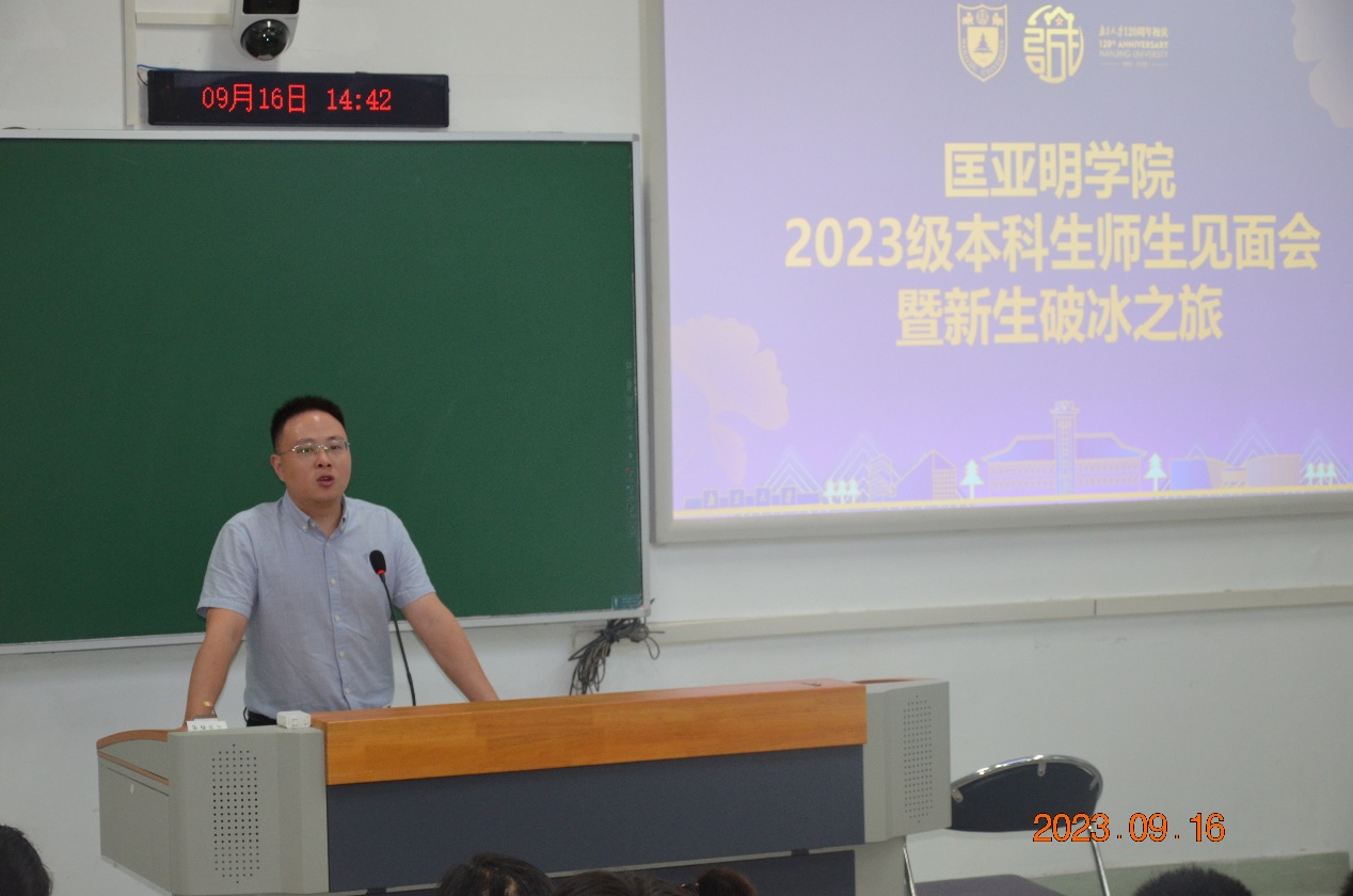 为让2023级匡院新生更快、更好地融入大学生活,明晰在大学中的目标,促进师生间、同学间相互认识、熟悉,匡亚明学院9月16日下午在鼓楼校区郑钢教学楼举行“2023级本科生师生见面会暨新生破冰之旅”。匡亚明学院领导、老师们,匡亚明学院2023级全体新生及学长学姐们齐聚一堂,进行了愉快又深刻的交流。