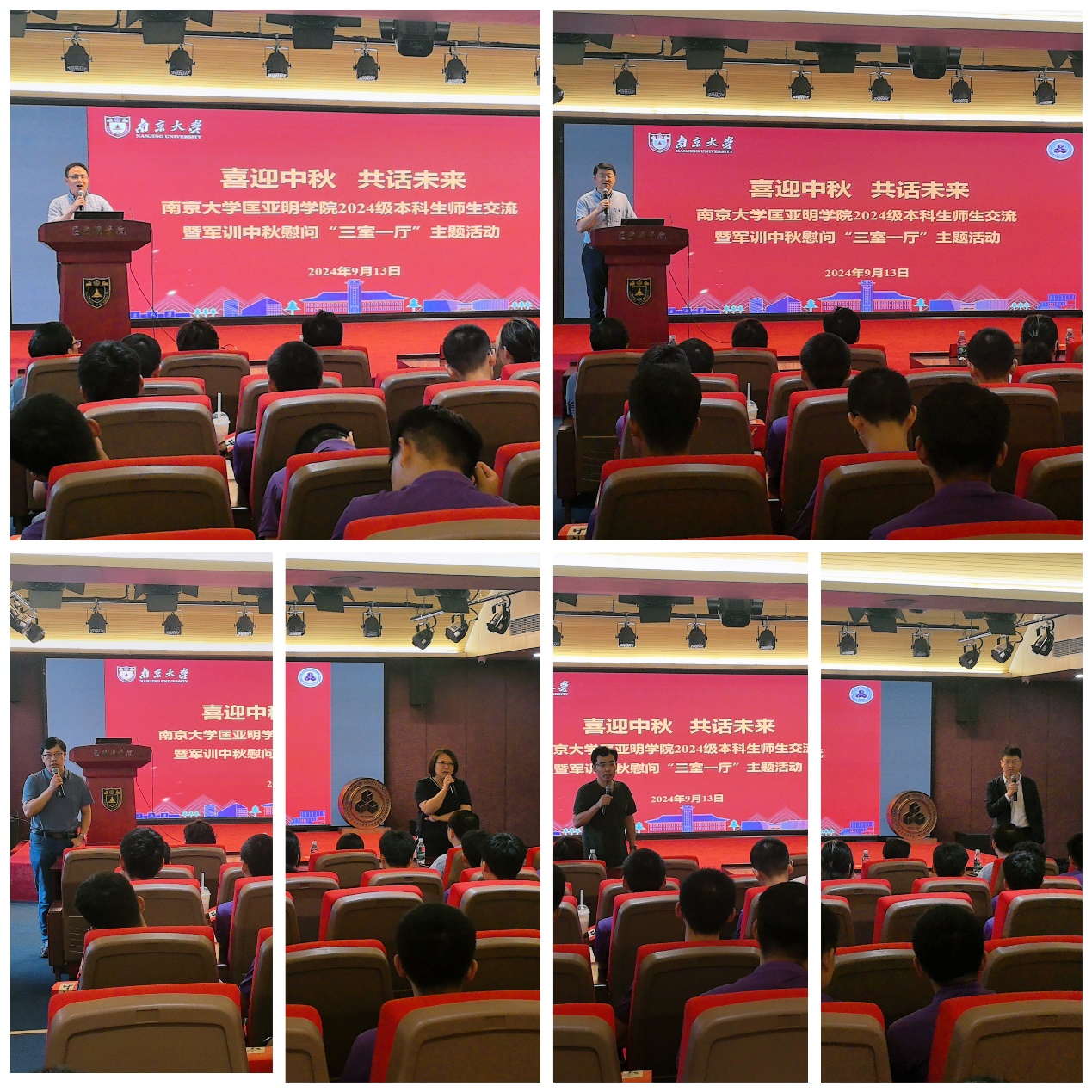 2024年9月13日,“喜迎中秋 共话未来”南京大学匡亚明学院2024级本科生师生交流暨军训中秋慰问“三室一厅”主题活动在潘琦楼国生报告厅圆满举行。匡亚明学院党委书记周媛、党委副书记周安、副院长董昊、班主任郭亚冲、老师代表以及2024级全体本科生130余人共同参加活动。活动由周安主持。