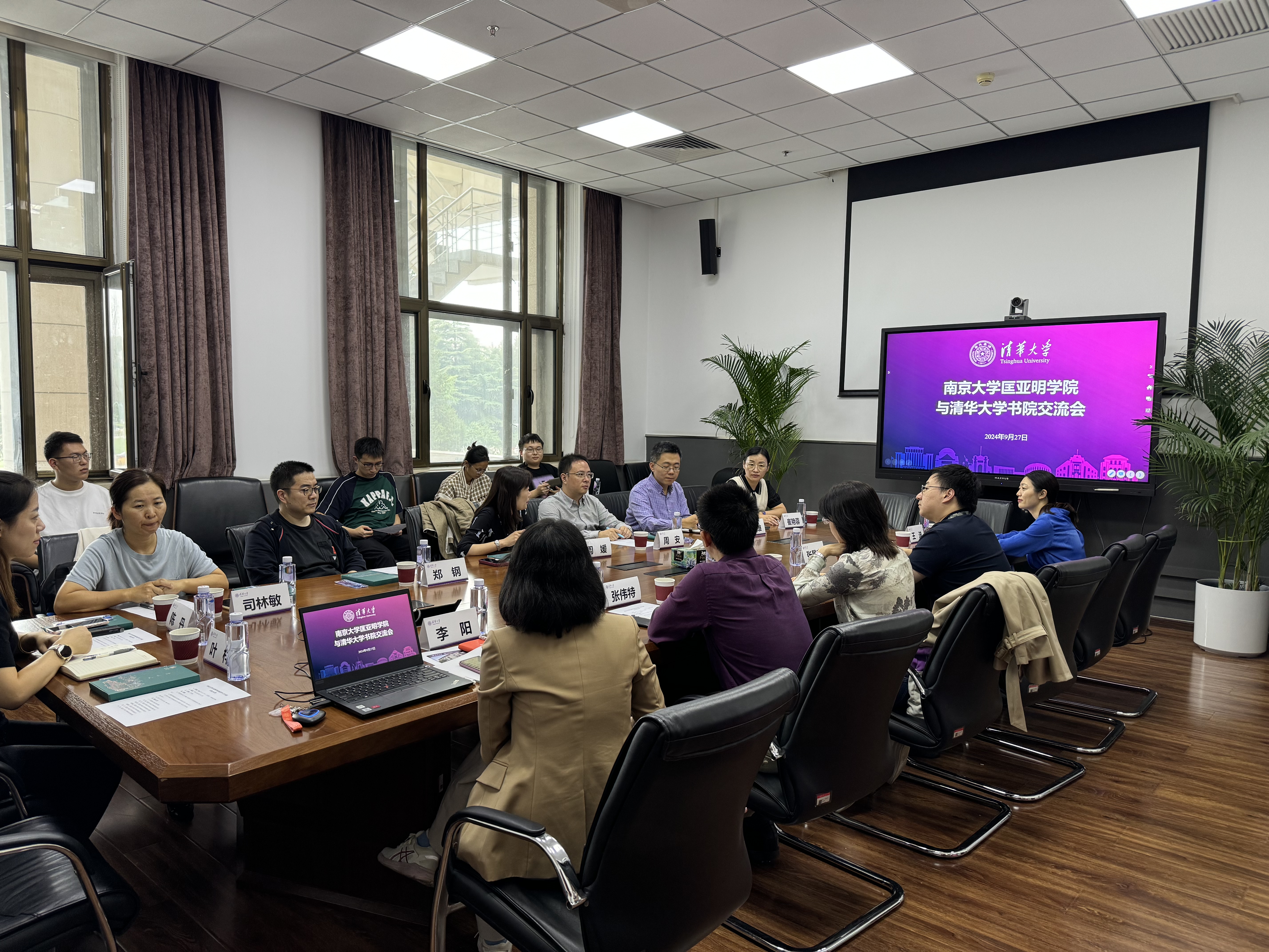 9月27日下午,师生一行前往清华大学书院开展调研。清华大学书院党委书记、为先书院副院长王秀梅,新雅书院副院长张伟特等共同参加了座谈。王秀梅从书院架构、各自特色等方面介绍了清华大学书院整体情况。张伟特详细分享了新雅书院培养目标、课程体系及书院特色。周媛分享了匡亚明学院办学理念、培养特色、教学成果、学生工作、国际交流合作等情况。双方从课程改革、师资建设、学生工作、多专业融合、科研训练、本博贯通培养、“从游”文化等深入探讨了教育教学改革。
