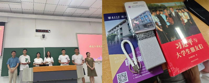王骏、周媛为新生代表颁发了具有学院特色的入学纪念品。为强化思想和科研引导,学院还遴选了优秀教师担任匡院新生班主任和新生导师。