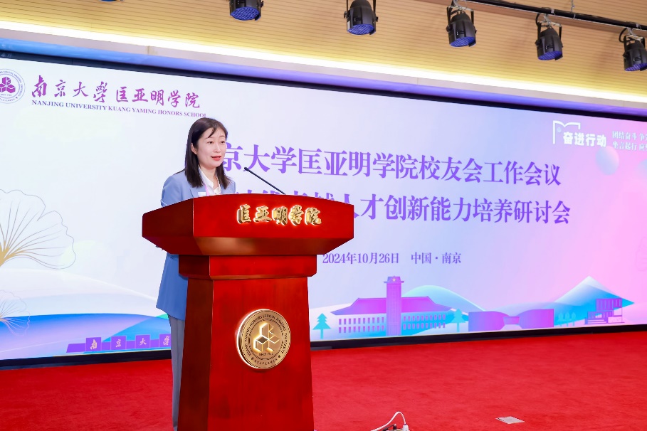 2024年10月26日,南京大学匡亚明学院校友工作会议暨新时代卓越人才创新能力培养研讨会在南京大学仙林校区召开。南京大学党委常委、副校长陆现彩,匡亚明学院(强化部)原主任、教学总监卢德馨,青海理工学院副院长张亚权,南京大学校友事务与发展工作处处长冯帆,南京大学本科生院院长、新生学院执行院长、匡亚明学院院长王骏,匡亚明学院首任少年班副主任桑志芹,匡亚明学院曾任院长、教学委员会顾问许望,匡亚明学院曾任党委书记乔蔚虹,匡亚明学院曾任院长、教学委员会顾问王炜,南京大学名誉校董、匡亚明学院2004级院友郑钢,学院党政领导班子及来自学术界、企业界和行业部门等领域的100余位校友代表出席会议。会议由南京大学匡亚明学院党委书记周媛主持。