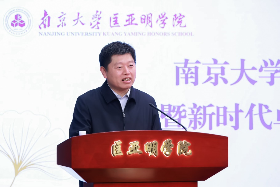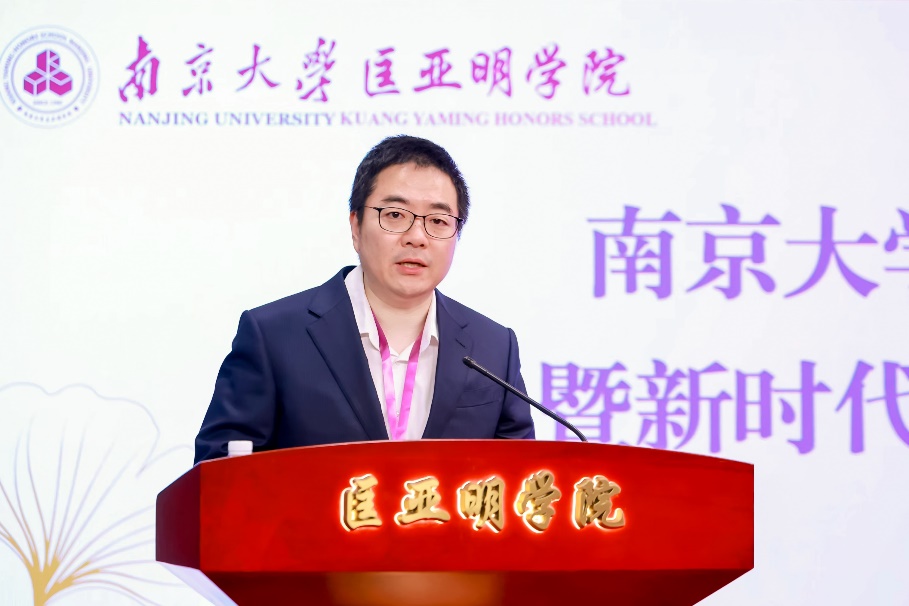 王骏作校友会筹备情况及发展愿景汇报。他介绍了学院近四十年来的发展历程和取得的成绩,并汇报了学院校友会成立的初衷。他谈到,为更好凝聚校友力量、助力学院拔尖创新人才培养,经校友倡议和学院筹划,成立南京大学匡亚明学院校友会。他希望院友们能够始终关注母院的发展,提出宝贵建议,匡亚明学院也将以更加务实的举措,聚力探索以科技发展、国家战略需求为牵引的人才培养模式改革。