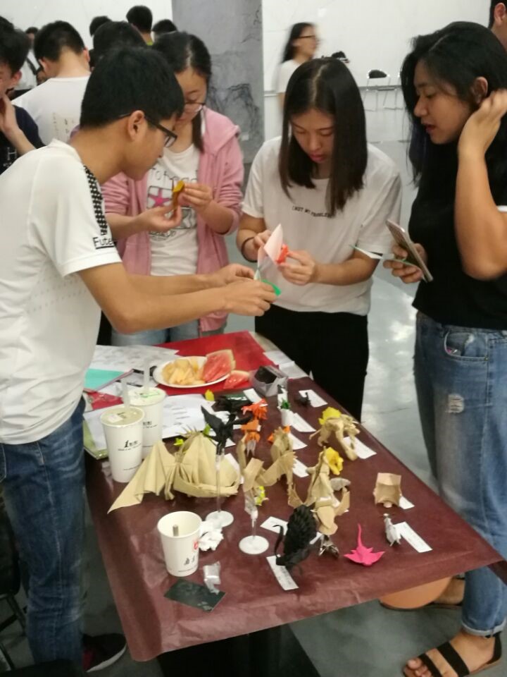 来自物院韦巍同学的折纸小展台,吸引了很多留学生前来学习
