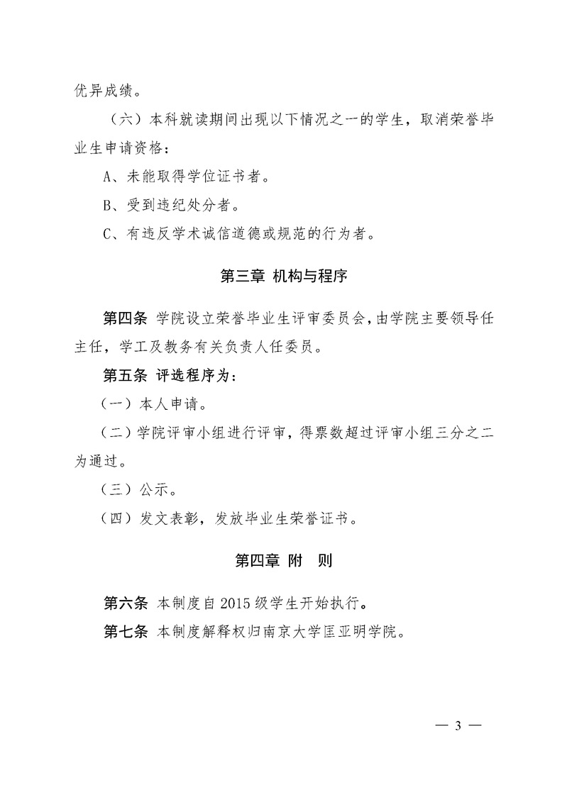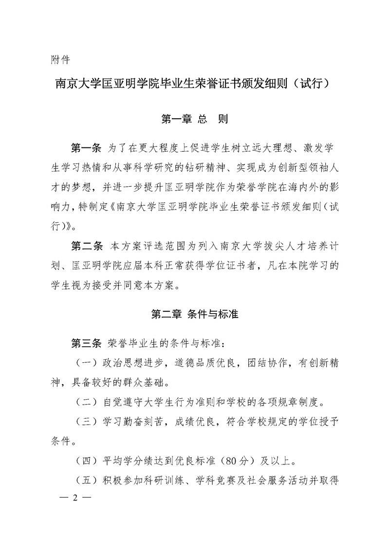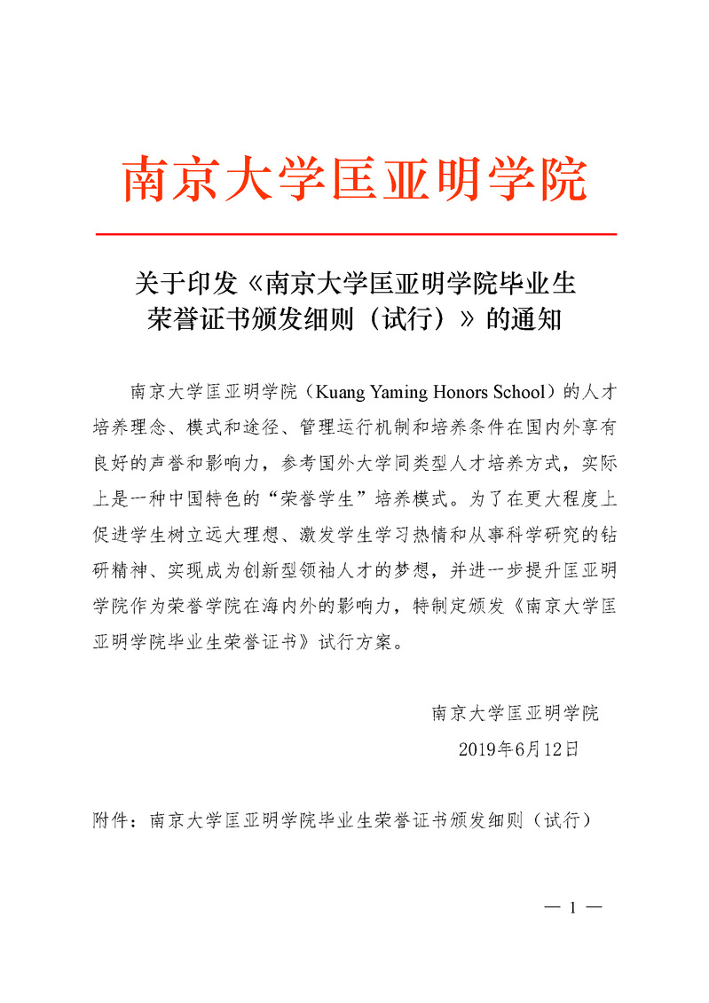 南京大学匡亚明学院毕业生荣誉证书颁发细则(试行)