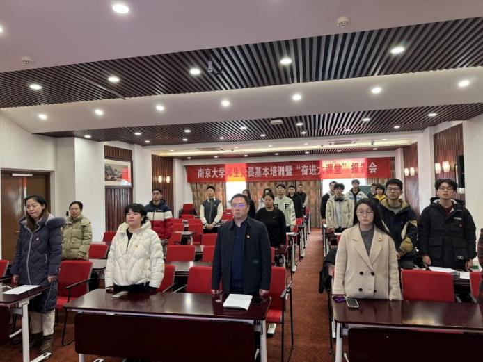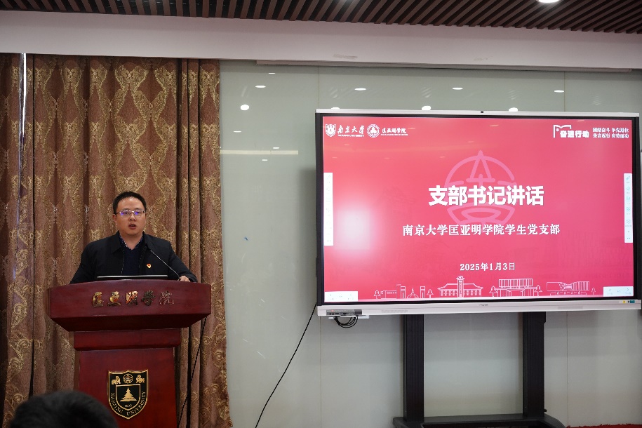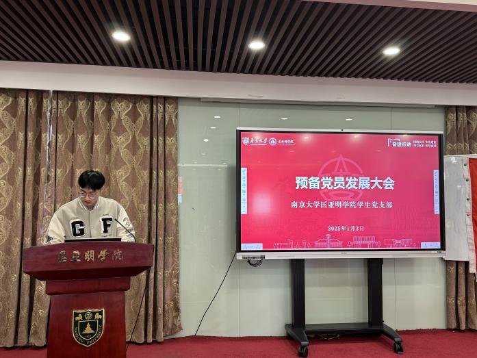 2025年1月3日中午,匡亚明学院预备党员发展大会在郑刚厅隆重举行。匡亚明学院党委副书记周安,辅导员赵玉倩、陈丹、司林敏,本科生院兼职辅导员许梦溪以及匡亚明学院学生党支部全体党员参加了此次大会。会议由支委刘鹏飞同志主持。