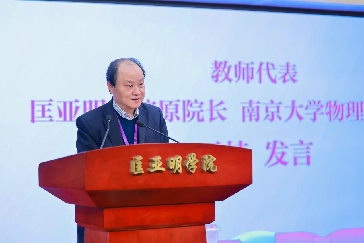 匡亚明学院原院长、南京大学物理学院教授王炜,1991级院友、杭州师范大学副校长(主持工作)唐睿康,2022级本科生肖奡分别作为教师代表、院友代表和学生代表发言,回顾学院建设发展历程与师友风采,并为学院送上美好祝福。