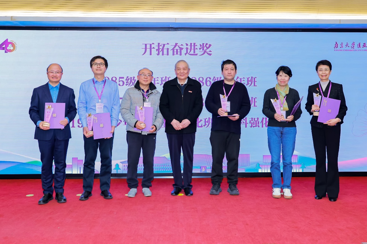 在荣誉表彰环节,谭铁牛为原南京大学基础学科教学强化部主任、原南京大学基础学科教育学院院长、匡亚明学院教学总监卢德馨教授颁发“卓越贡献奖”。与会嘉宾和领导为匡亚明学院“桃李育人奖”“开拓奋进奖”“特别贡献奖”“突出成就奖”获奖个人和集体颁奖。