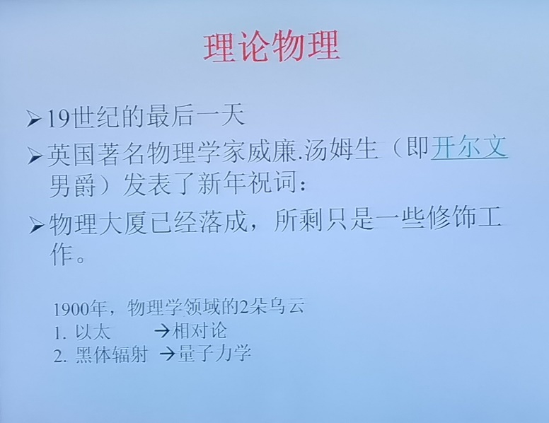 在第二部分,万教授向我们介绍了理论物理的相关知识:从牛顿三定律入手,进一步介绍到麦克斯韦方程组,从而延伸到量子力学的相关内容。