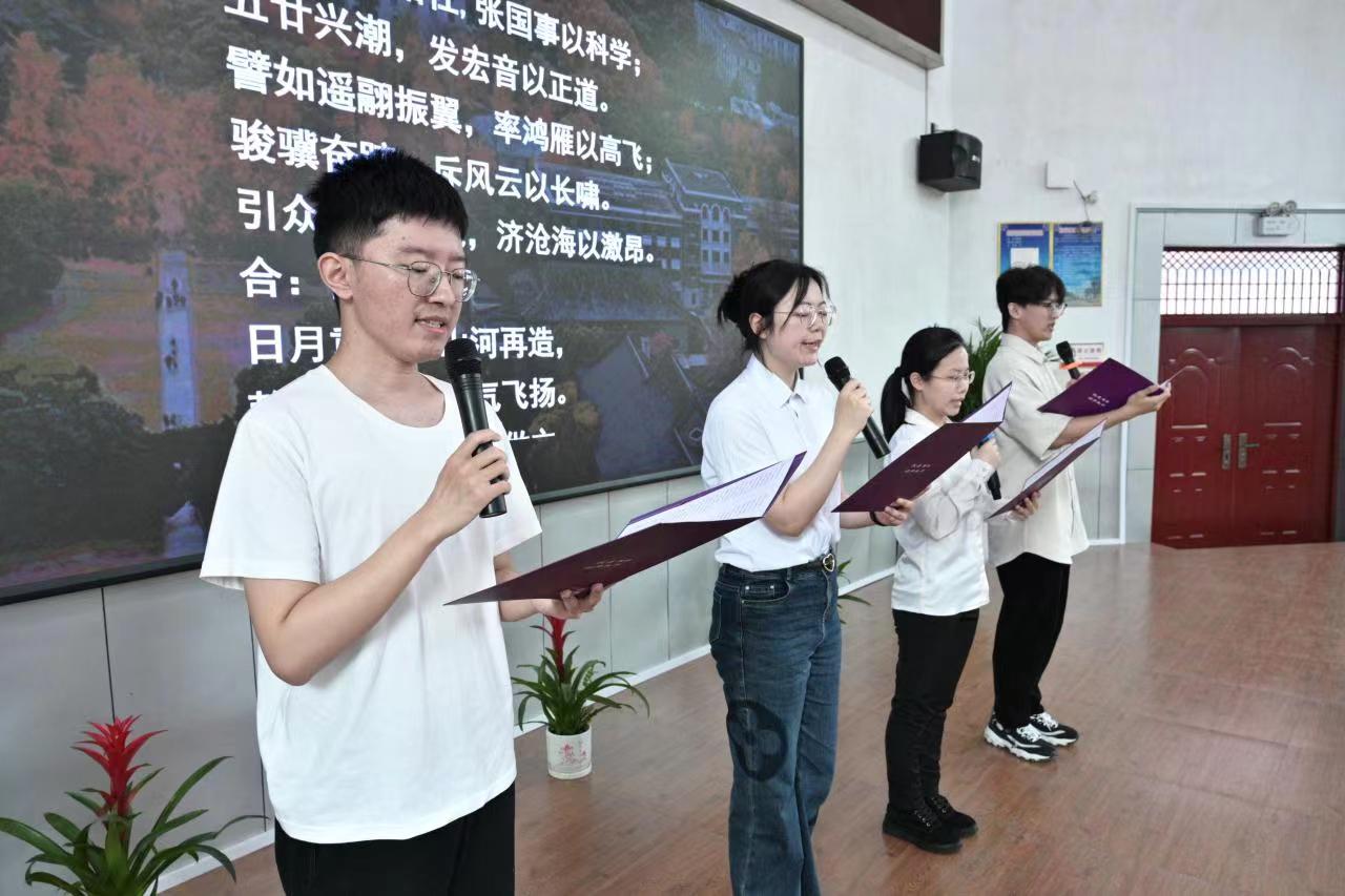 匡亚明学院学生党支部成员为大家带来了大气磅礴的诗歌朗诵《南大赋》,带我们回顾了南大百年校史和著名人物,从世道沧桑、时局乍裂中走向芬芳桃李、锦绣山河,南大师生如骏骥奋蹄,励学不怠,“汇百科而两仪泰,求真理而万象明”。