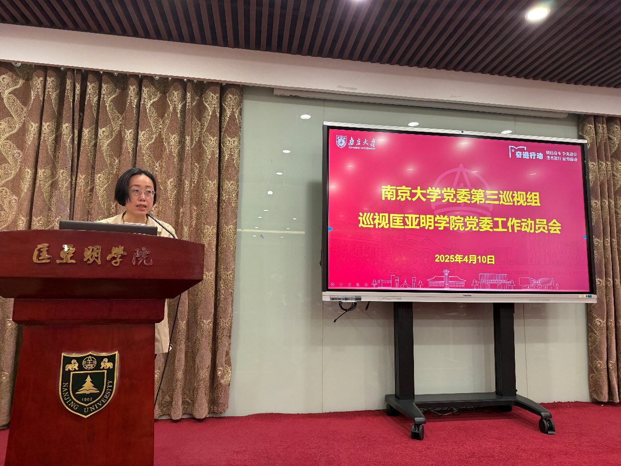 董婷在讲话中指出,要充分认识巡视工作的重要意义,严格把握本轮巡视整体工作安排,明晰巡视目的、任务和方法,全力统筹协调推动,端正态度正确对待,始终坚持“发现问题、形成震慑,推动改革、促进发展”的工作方针,紧盯“四个落实”方面的突出问题,落实全面从严治党主体责任和监督责任情况、落实新时代党的组织路线情况、落实巡视监督等其他监督发现问题整改情况,发挥巡视“利剑”作用,为匡亚明学院进一步发展保驾护航,为加快建设“第一个南大”的“第一个匡院”提供坚强政治保障。