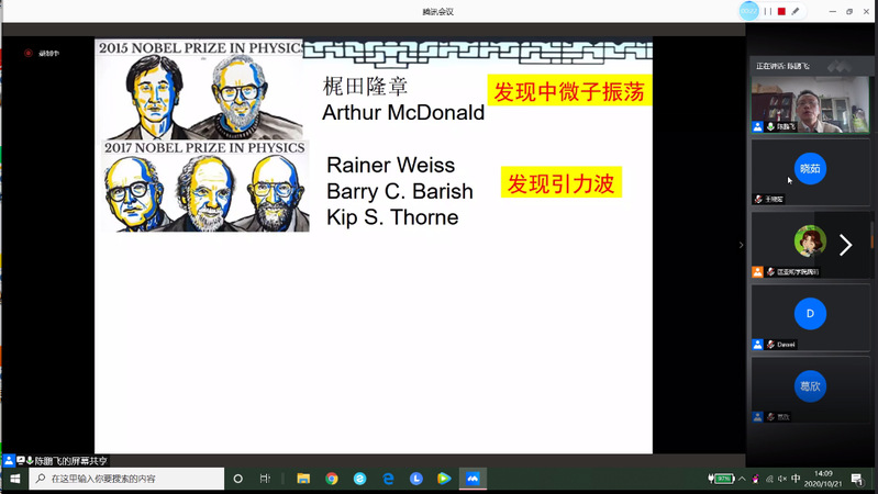 2020年10月21日,南京大学匡亚明学院又举办了线上名师导学讲座,陈老师首先从诺贝尔物理学奖讲起,对比这些年诺贝尔物理学奖的获奖领域就会发现近几年天体物理的发展趋势。然后陈老师就进入今天的主题“黑洞”,陈老师说他其实是“门外汉”,今天的讲座其实是一个故事性质。在今天的课程中,我们了解到很多很多的天体,比如太阳、白矮星等等。我们也看到了M87中心的黑洞照片,这也是洗了两年之久的第一张黑洞照片。陈老师也给我们介绍了三个有趣的科学问题——黑洞的质量与黑洞所在星系质量成线性关系、能量、引力波。陈老师用这三个科学问题结束了今天的讲座。