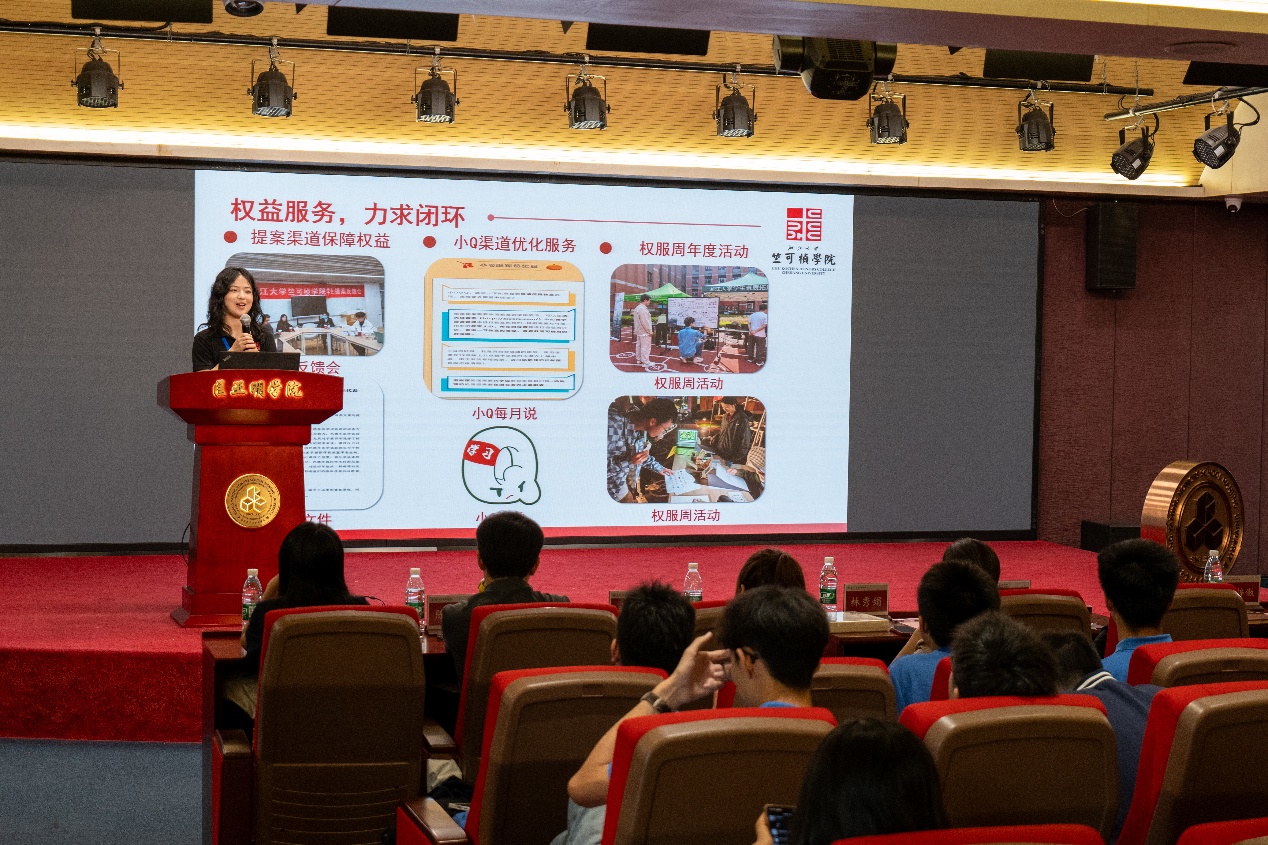 四校荣誉学院学生会代表依次以多元视角诠释了各院独具匠心的育人理念与学术追求,系统梳理了各学院学生组织的品牌项目,生动彰显了新时代荣誉学院建设的前沿探索。匡亚明学院学生会代表邱文宣阐述了学生会的工作理念和工作成果,体现了学生会全心全意为同学服务的宗旨和团结友善、务实高效、严谨活泼的工作作风。