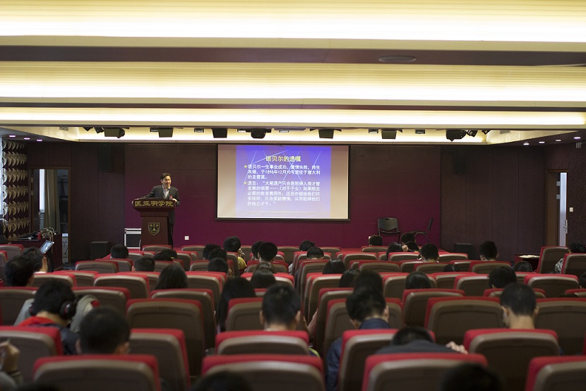 而后,谭老师重点讲解了微生物领域的诺贝尔奖,探讨微生物研究的重要性。同时,他还向大家介绍了胰岛素的发现与合成研究的经过,让同学们对近现代生物技术研究和创新有了更深刻的认识。接着,谭老师回顾了各个领域诺贝尔奖得主生平经历以及他们的共同点,潜移默化地使大家懂得从事科研需要的是“专注与奉献”,通过一系列鲜活的例子,回答了讲座开始时提出的问题——他们为何获得诺贝尔奖。