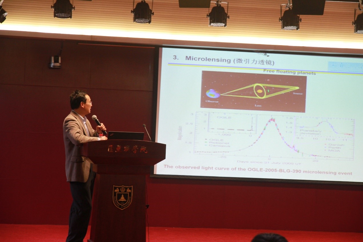 同时,周教授还对重力微透镜等其他方法做了简介。在讲座的最后,周教授对南京大学天文与空间技术学院正在进行的各项研究做了简要的描述,并热情的欢迎同学们投身天文与空间科学的研究。