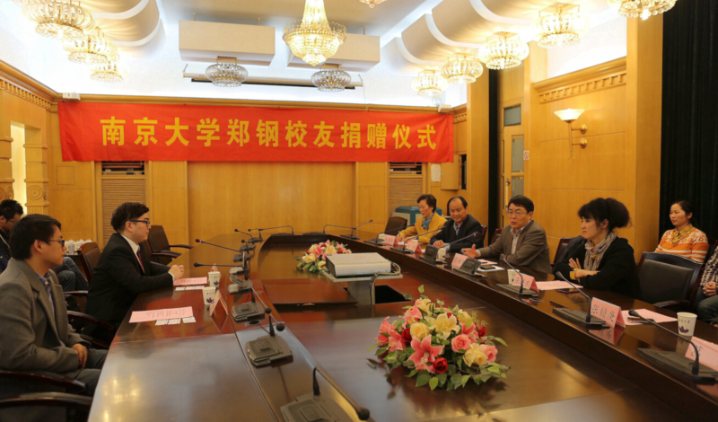 11月11日下午,南京大学郑钢校友捐赠仪式在鼓楼校区举行。我校党委副书记任利剑,匡亚明学院2004级校友、职业金融投资人郑钢,匡亚明学院2003级校友、郑钢职业金融投资合伙人冯声振等出席捐赠仪式。仪式由直属教学科研单位党委书记乔蔚虹主持。