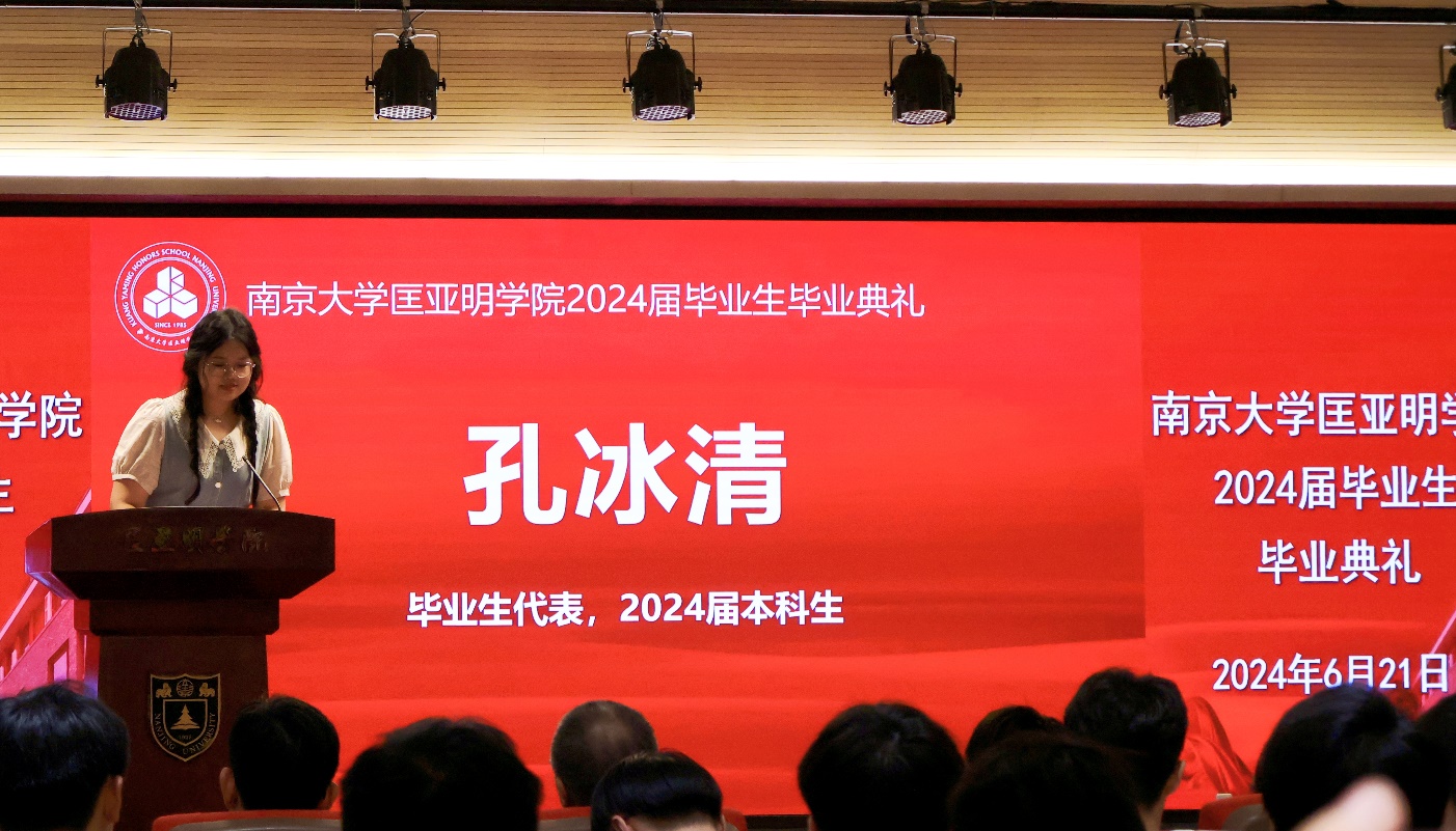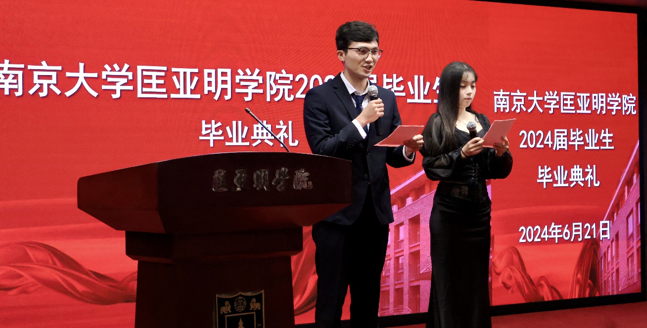 2024年6月21日下午,匡亚明学院2024届本科和硕士毕业生毕业典礼在国生报告厅举行。本科生院常务副院长、匡亚明学院院长王骏、匡亚明学院党委书记周媛、副书记周安、副院长董昊,物理学院沈瑞、生命科学学院丁智、计算机科学与技术系刘景铖、匡亚明学院许望、胡晶磊、曾桂香以及辅导员、教务员等老师一起参加毕业典礼。活动由2024届毕业生陈苏怡、傅成瑄主持。