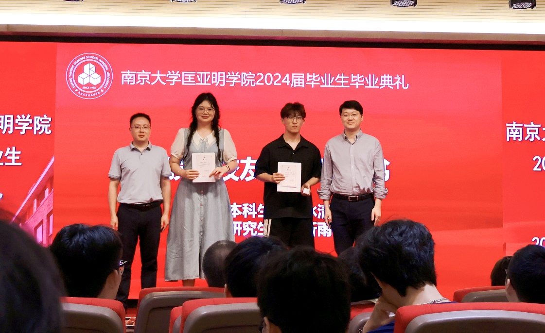 在毕业典礼上,学院对一系列全面发展、品学兼优的同学们进行了嘉奖。学院领导、老师分别颁发匡亚明学院毕业生荣誉证书、卢德馨嘉奖以及校友联络员等证书。