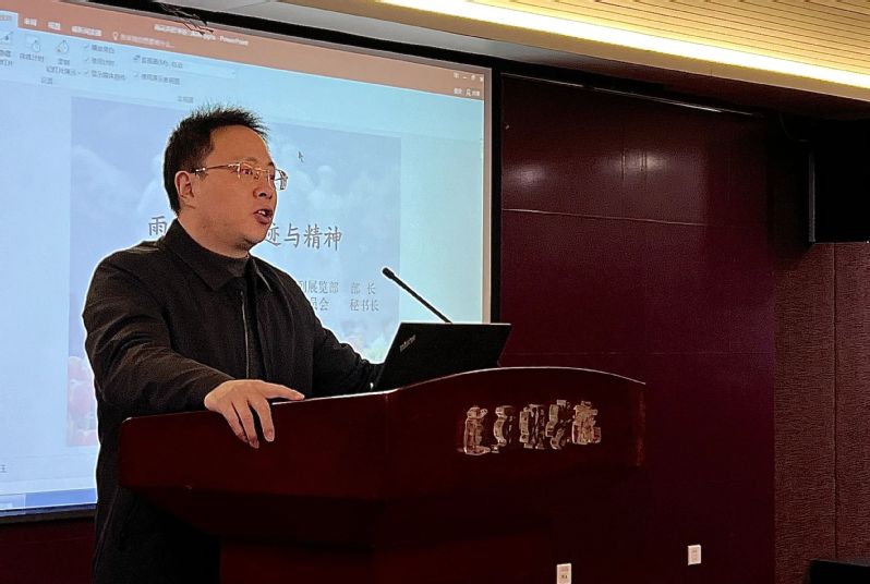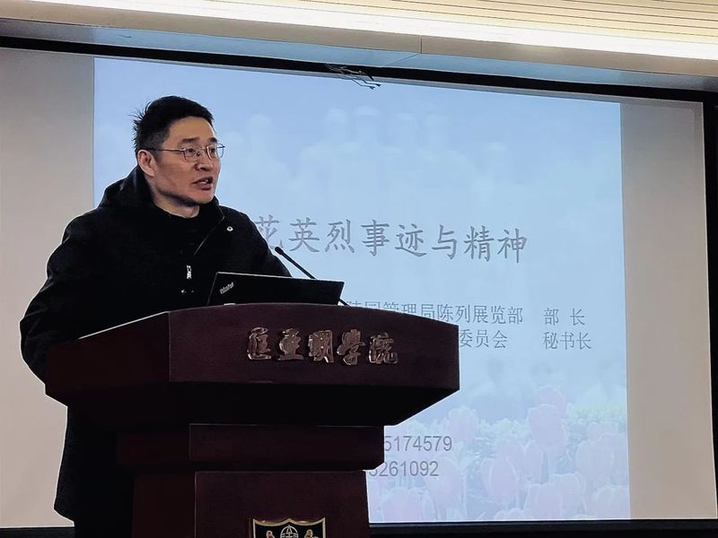 为弘扬雨花英烈事迹与精神,传承红色基因,进一步推进馆校合作共建,2024年3月27日下午,匡亚明学院邀请南京市雨花台烈士陵园管理局陈列展览部部长闻慧斌为匡亚明学院施滉班同学作了主题为《雨花台烈士及其革命精神》的讲座。讲座由学院党委副书记周安主持,院团委书记司林敏、部分教师代表、学院学生党支部以及学院“施滉班”全体同学参加。