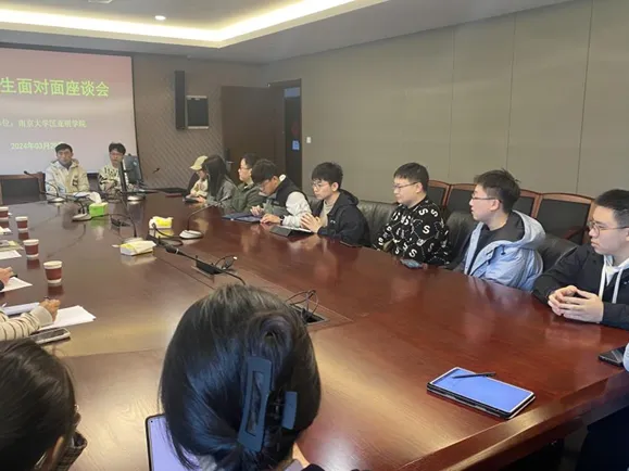 为进一步服务广大同学,改善学院的学习和生活环境,提升学院的教育教学质量,2024年3月20日中午匡亚明学院举行了 “青年学生面对面座谈会”。参加会议的有学院党委书记、院长王骏、党委副书记周安、副院长董昊、团委书记司林敏,以及各年级的团支书和学生代表等。学生代表们针对学习、生活、科创等提出了一系列具体的想法和建议。座谈会在司林敏老师的主持下,师生之间展开了深入的交流和讨论。