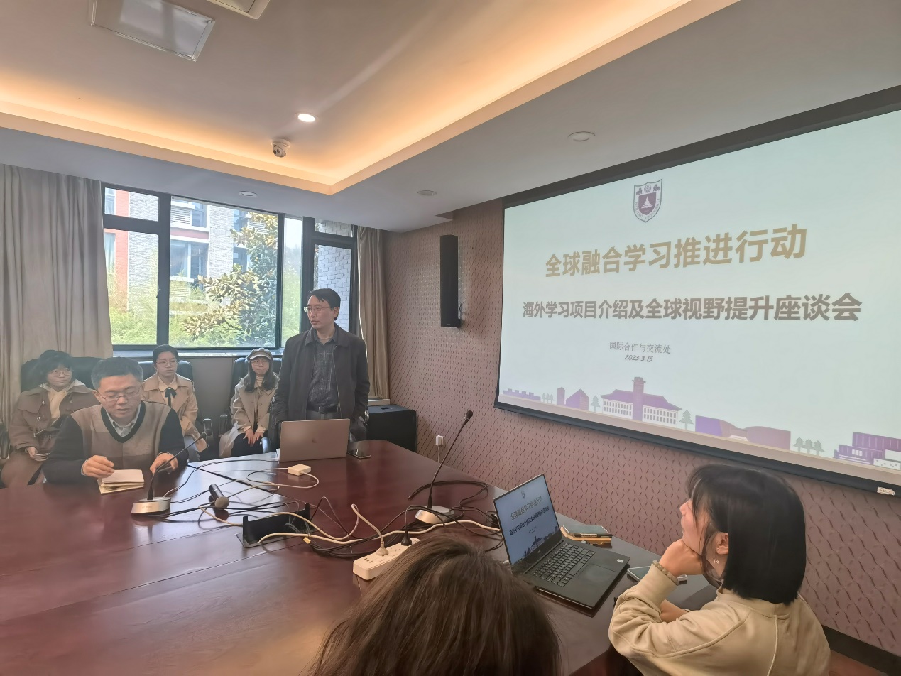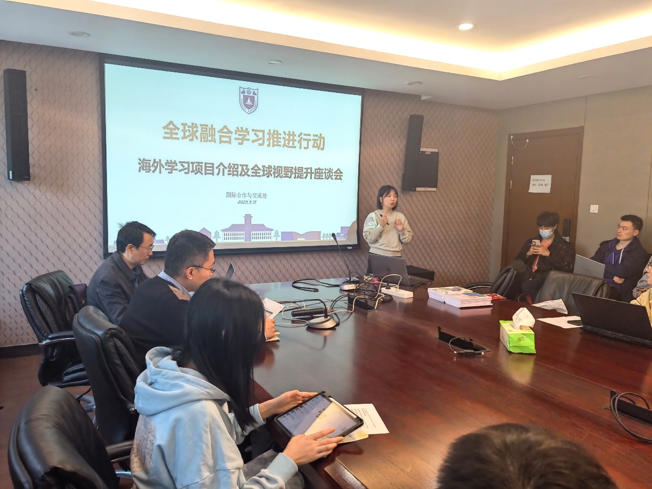 国际交流处陈楠老师首先发言。她提到国际交流恢复了正常,南京大学全球开放战略要求南大学生进行全球融合学习;现在是全球化的时代,南大学生要和世界各大高校的学生竞争,所以全球视野对于同学们来说至关重要。